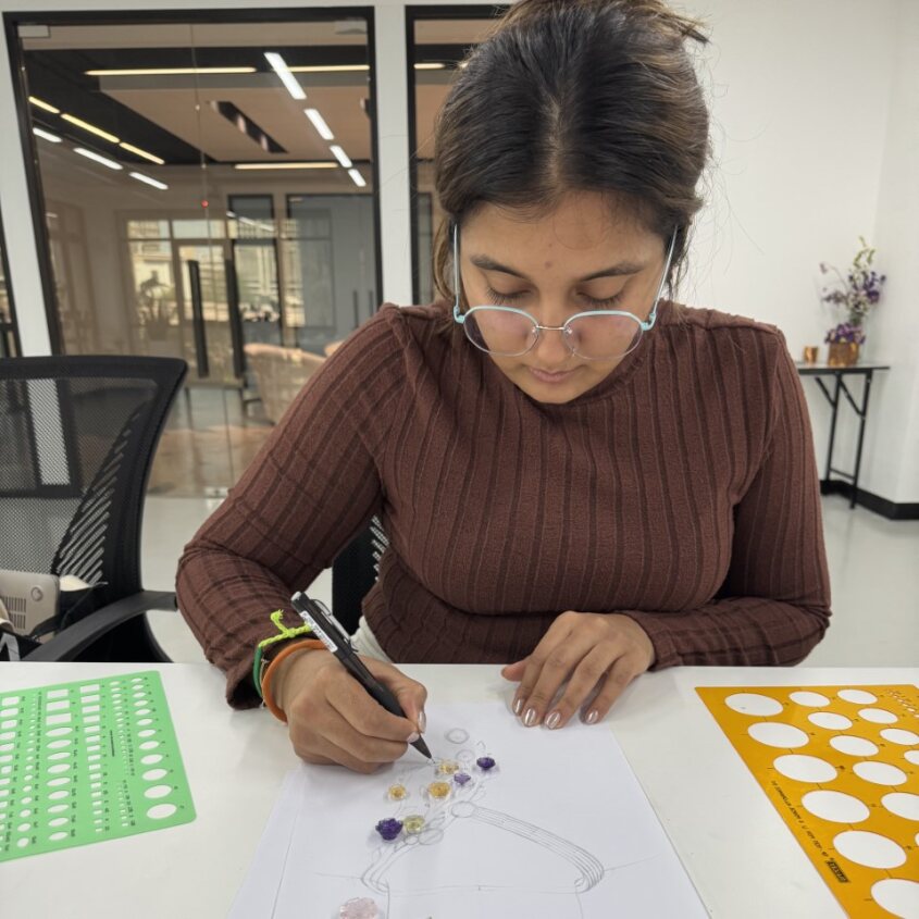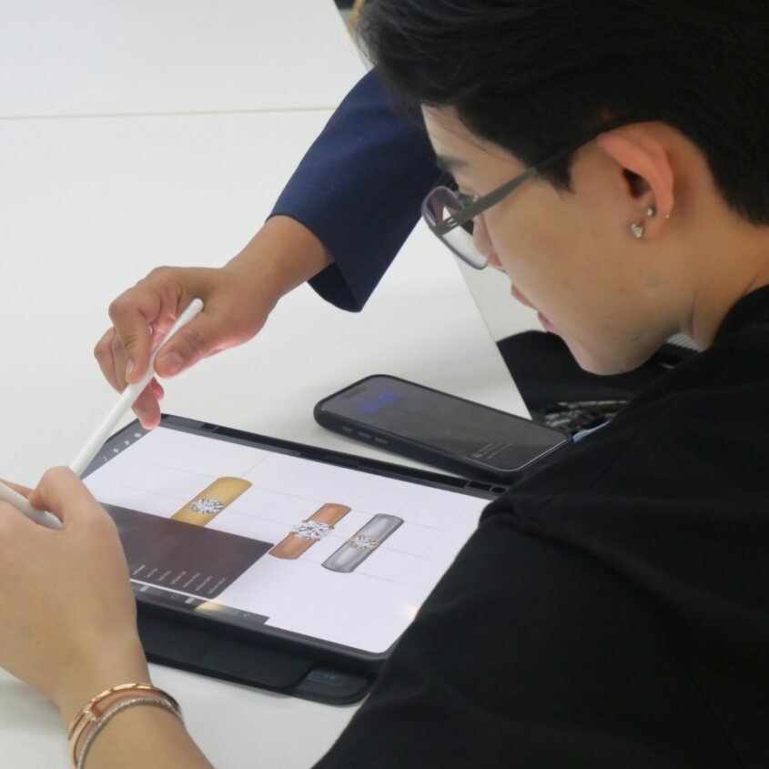 เรียนรู้การออกแบบเครื่องประดับโดยแอพลิเคชั่น Procreate บนipad เพื่อเน้นการนำเสนอดีไซน์ให้มีความน่าสนใจมากขึ้น อีกทั้งยังเป็นการใช้เทคโนโลยีที่ช่วยทำให้ผู้ที่ไม่มีพื้นฐานในการวาดรูปมาก่อนสามารถวาดและออกแบบเครื่องประดับอัญมณีได้ง่ายขึ้น