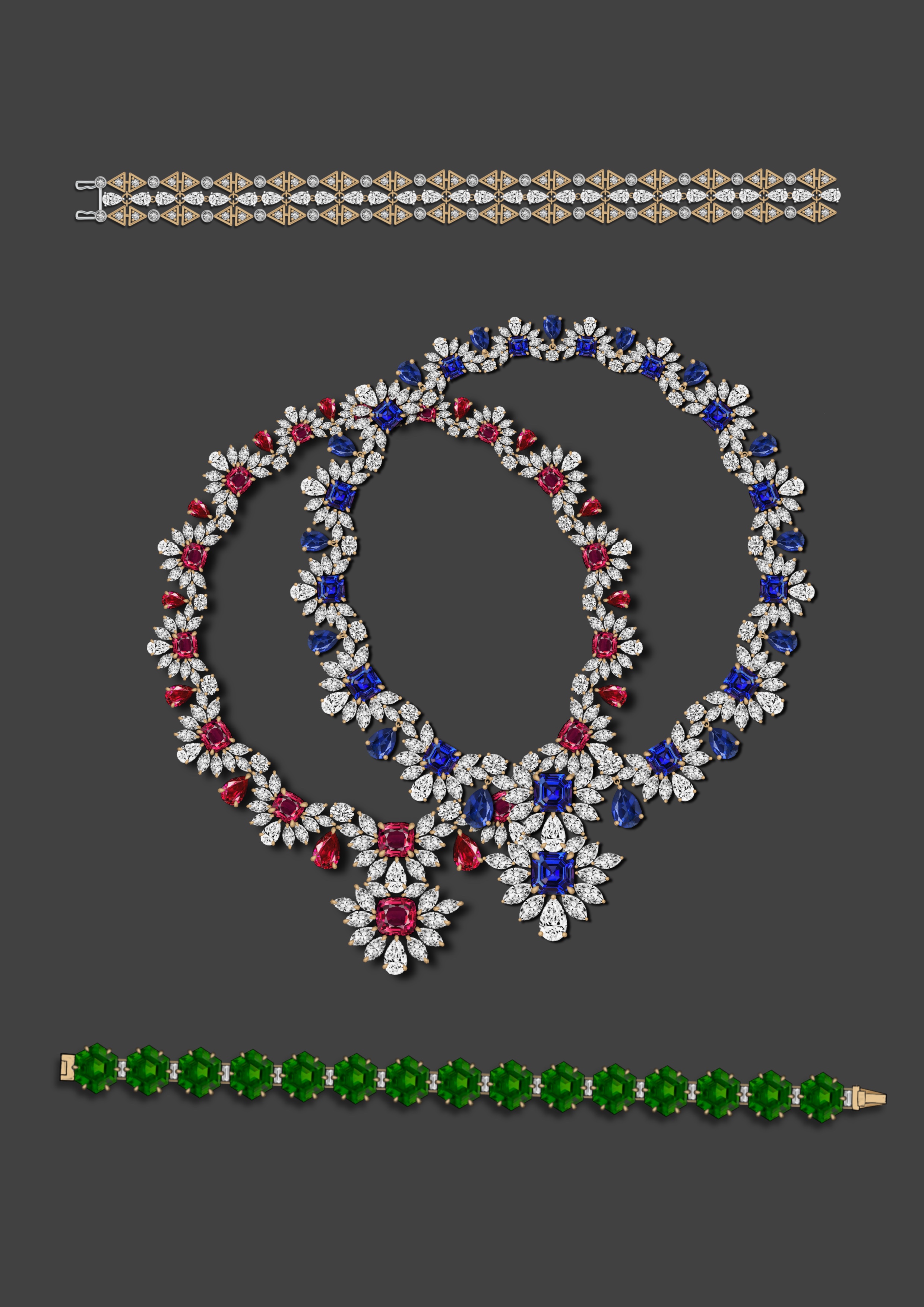 • Design high-end jewelry, emphasizing the use of white and colored diamonds.