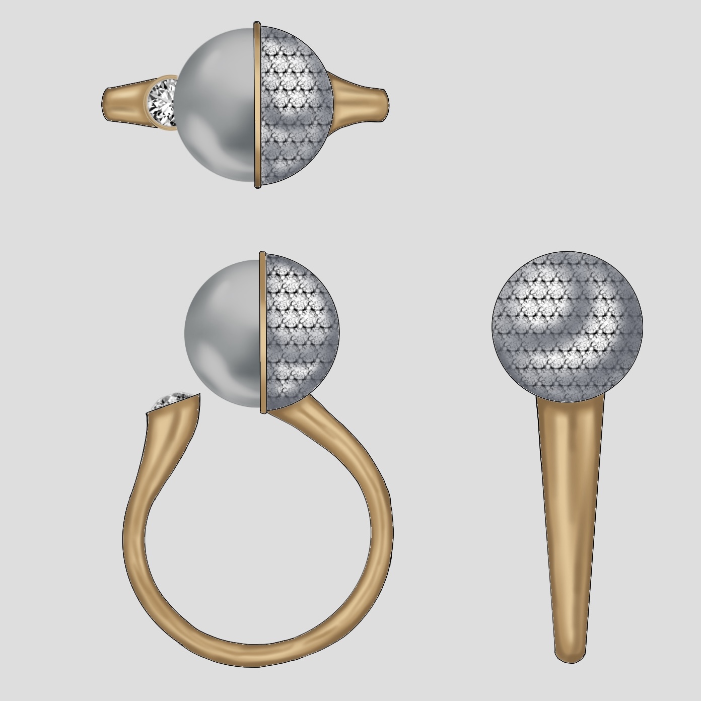 • Draw a Tiffany diamond ring with detailed views from the top, front, and sides.
